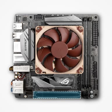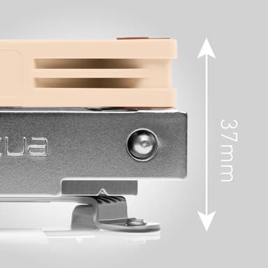 Due to the slim 23mm heatsink and the NF-A9x14 low-profile fan that measures only 14mm in thickness, the NH-L9 stands a mere 37mm tall, which makes it ideal for use in compact HTPCs or Small Form Factor cases that offer minimum clearance for CPU coolers.