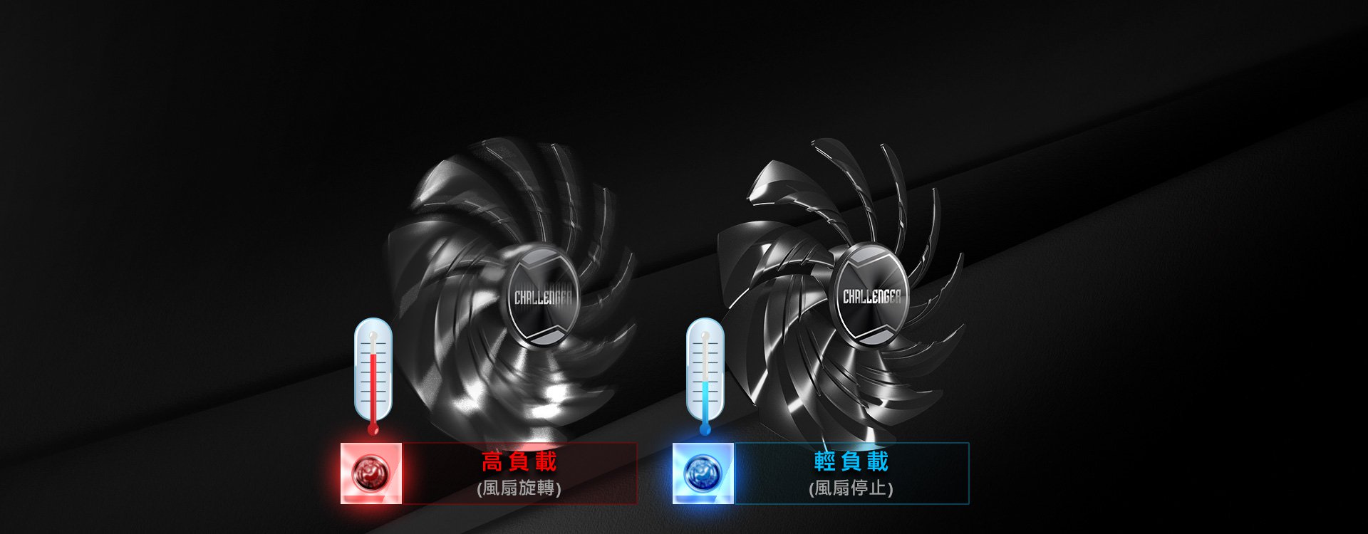 當顯示卡溫度提升時,風扇會轉動以加速散熱;當顯示卡溫度降低時,風扇會停止運轉,達到完全靜音的效果。