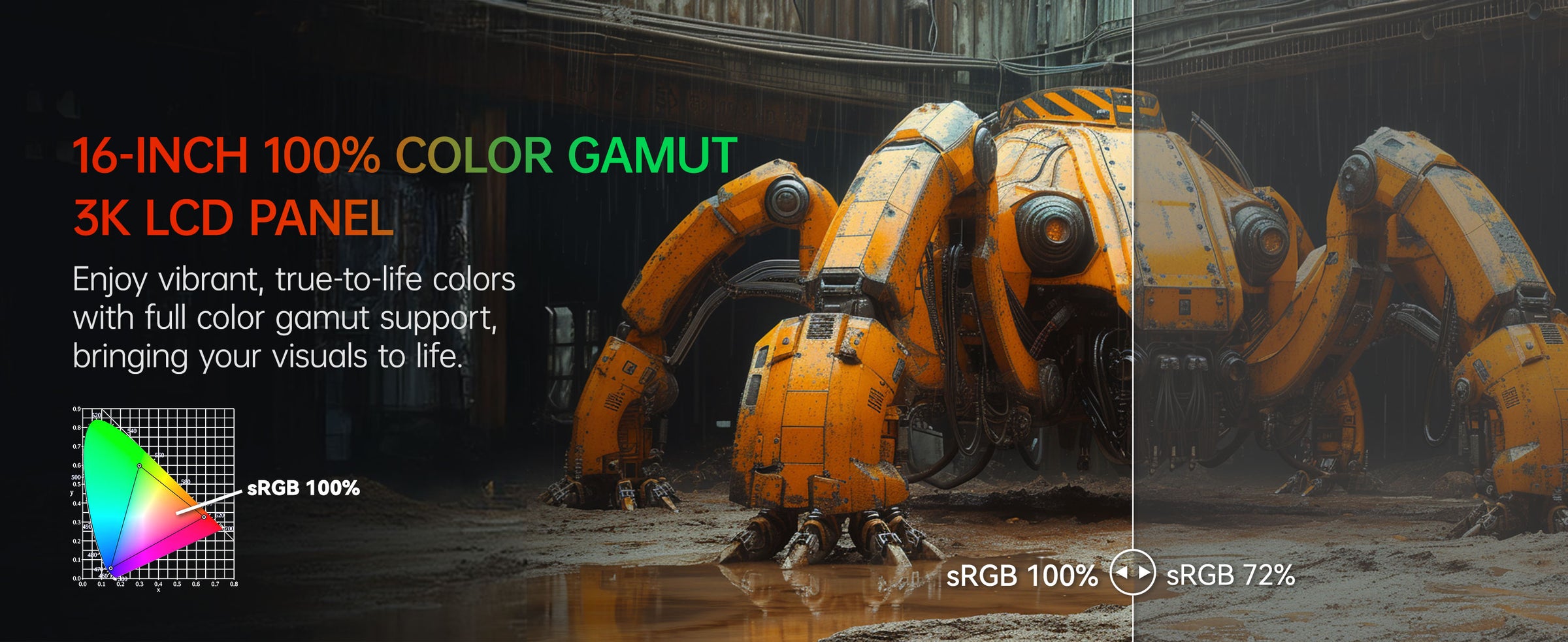 U16ZT high-end touchscreen portable monitor is designed to enhance your productivity and entertainment experience with its impressive 3K 3072x1920 resolution, 1500:1 contrast ratio, and 100% sRGB color gamut. Its 400 nits brightness ensures clarity in any environment, while the anti-glare (AG) screen provides a comfortable view even under bright light.