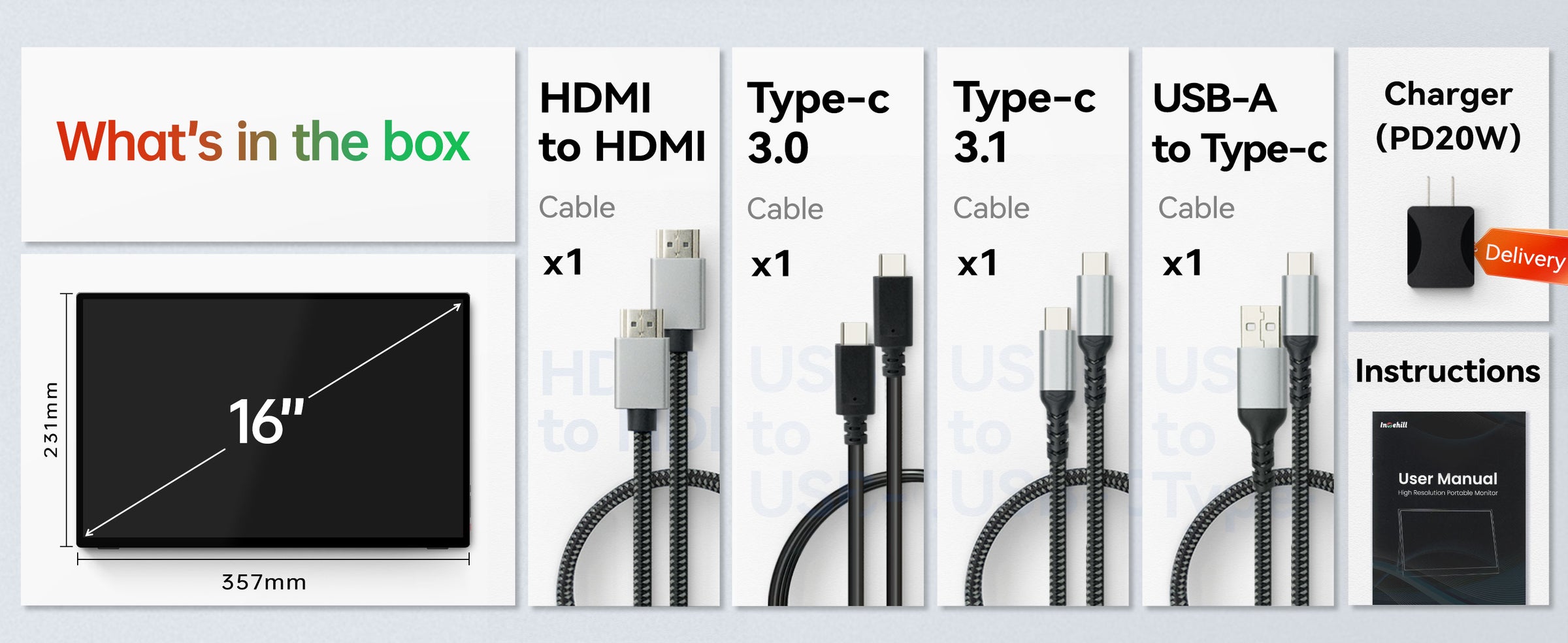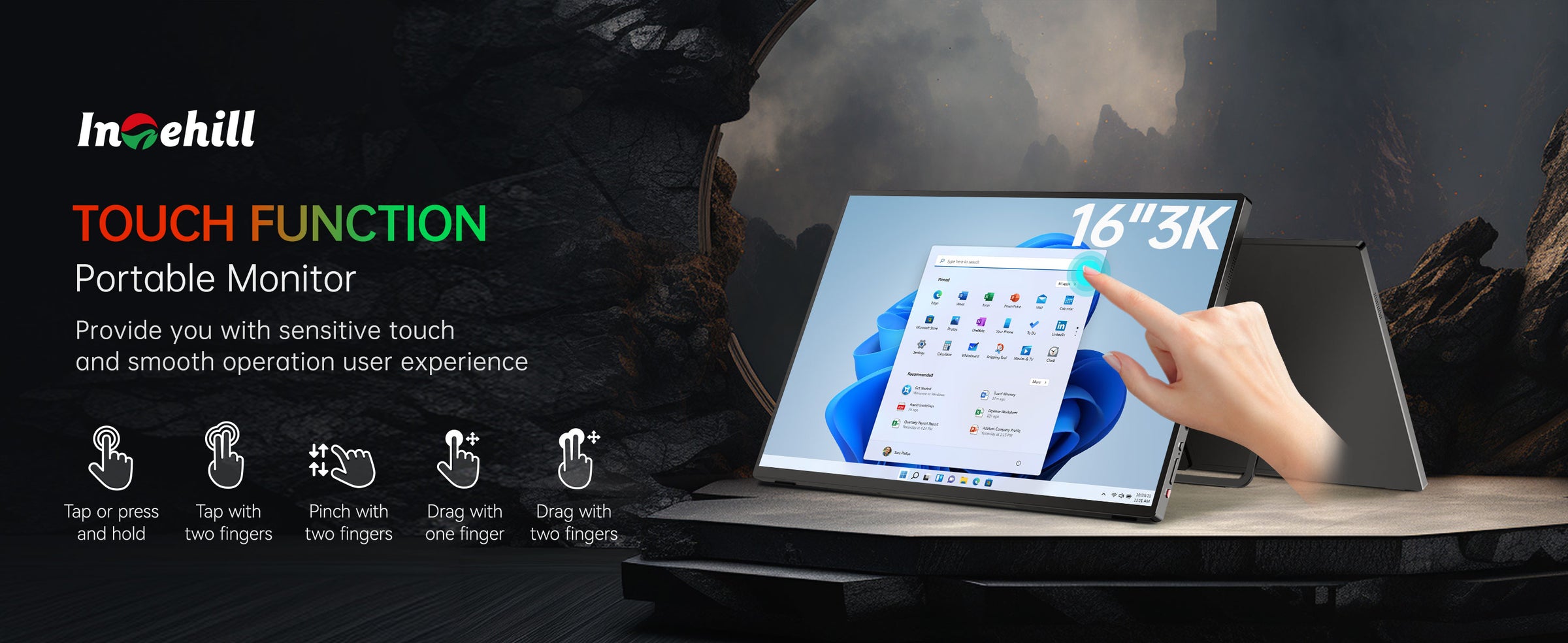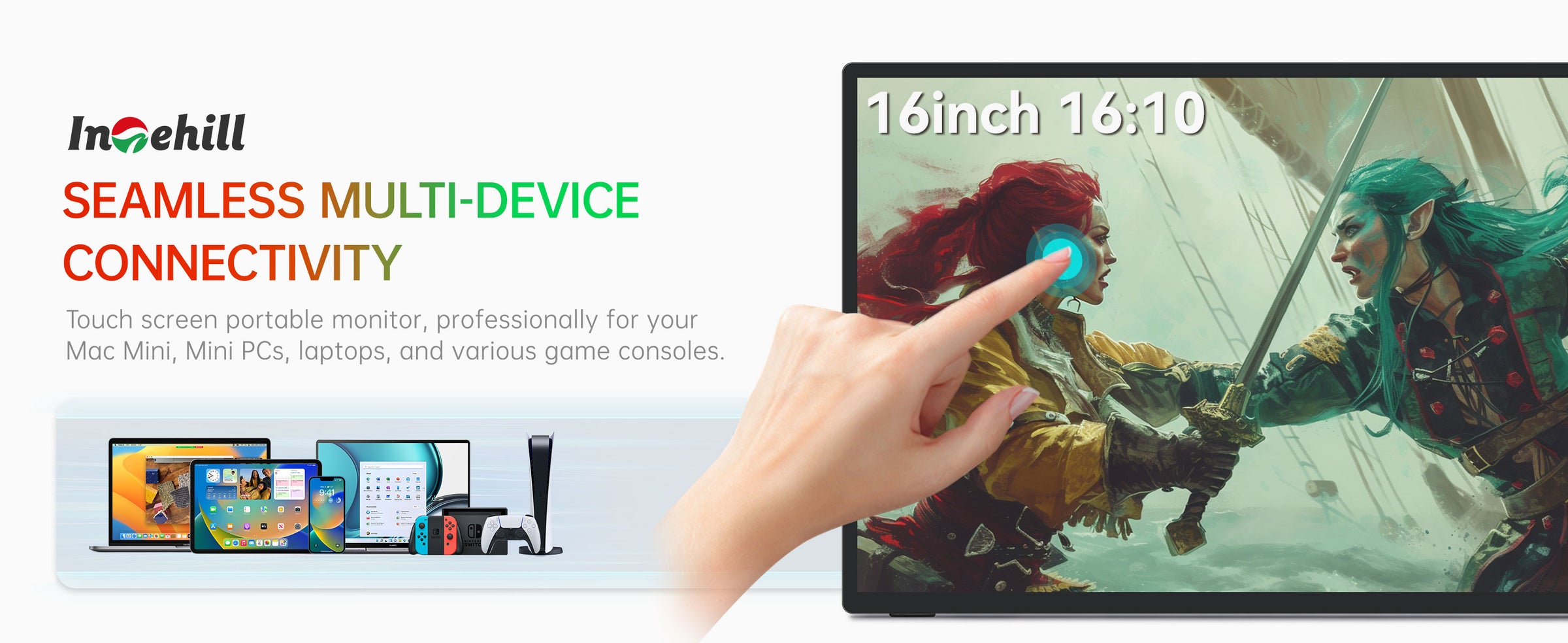 Intehill U16ZT high-end touchscreen portable monitor offers seamless connectivity with laptops, mini PCs, MacBooks, Switch, PS5, Xbox, and smartphones. Its versatile design ensures you can easily switch between work, gaming, and entertainment. (please note that touch capabilities are not available when connecting to consoles or smartphones.)