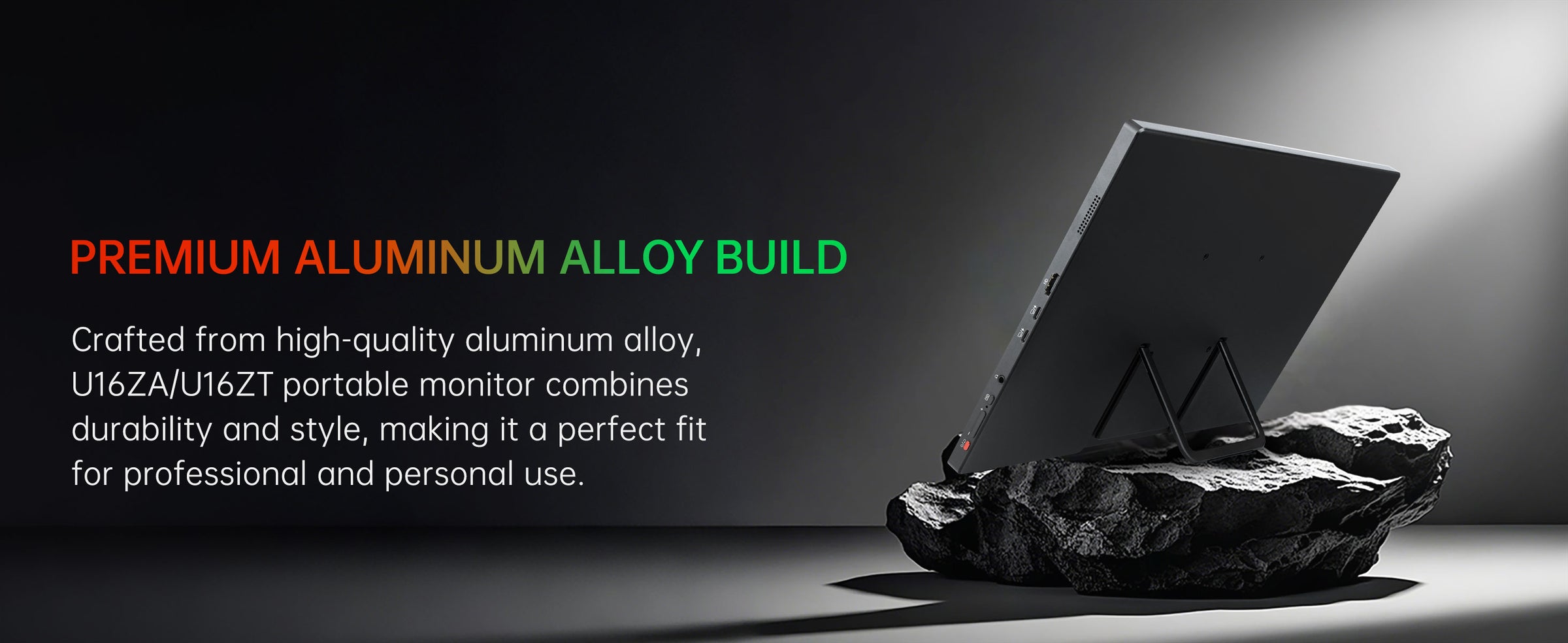 U16ZT portable touchscreen monitor combines sleek design with powerful functionality. Its lightweight, minimalist aluminum alloy body offers both elegance and durability, making it perfect for professionals and on-the-go users.
