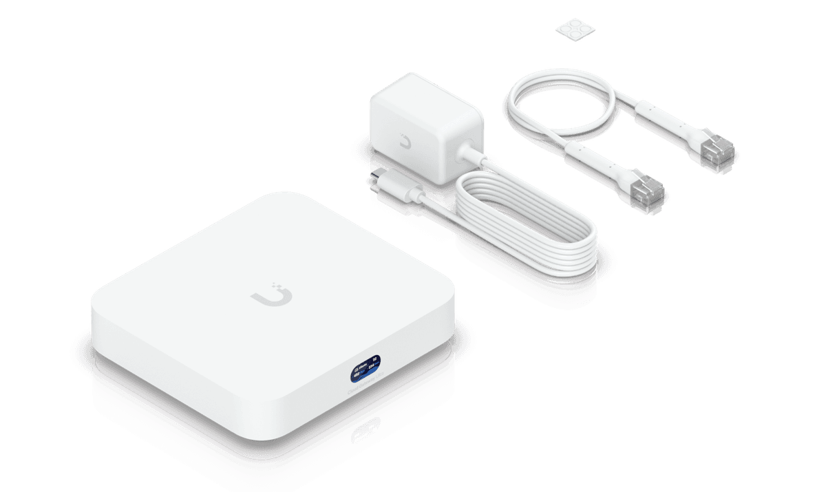 Compact Cloud Gateway with 30+ UniFi device / 300+ client support, 1 Gbps IPS routing, and multi-WAN load balancing.