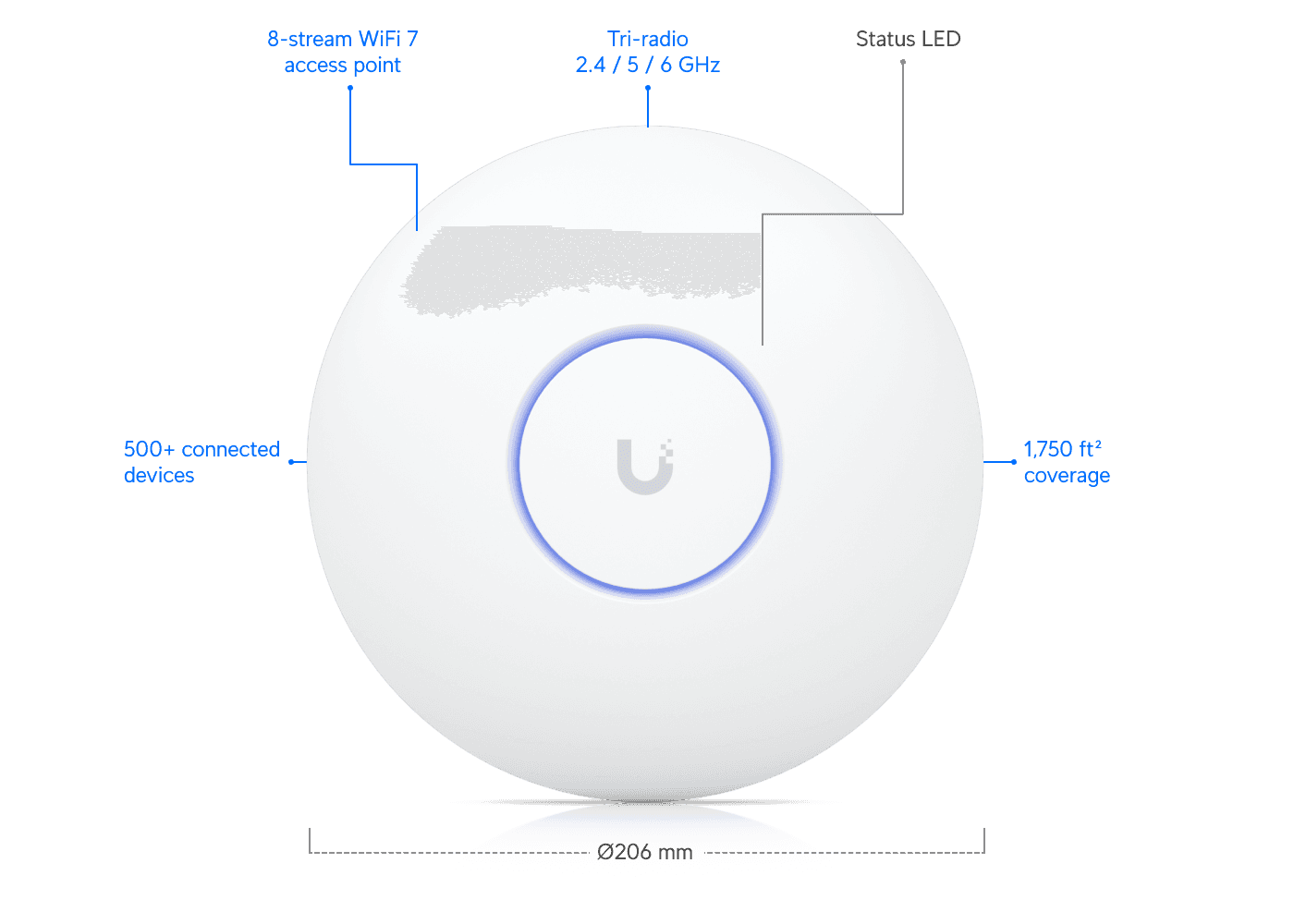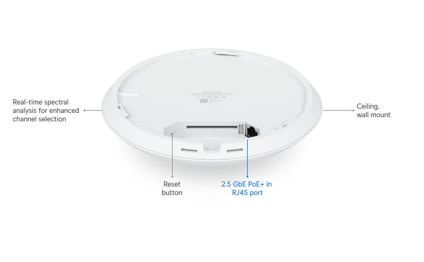 Ceiling-mounted WiFi 7 AP with 8 spatial streams, 6 GHz support, and a dedicated spectral scanning engine for interference-free WiFi in demanding, large-scale environments.