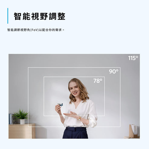 無論是個人會議,還是小組匯報,C300的深度感測及人臉辨識技術將自動調節畫面位置,確保你處於畫面的中心。