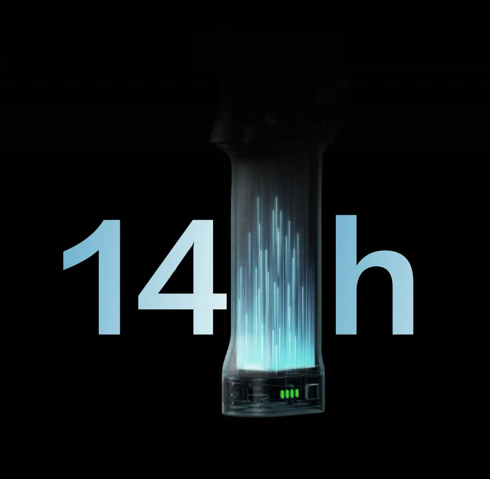 相比上代產品,DJI RS 5 僅需 1 小時即可充飽電,充電速度提升 60%,搭配標配電池可待機約 14 小時,續航提升 15%。