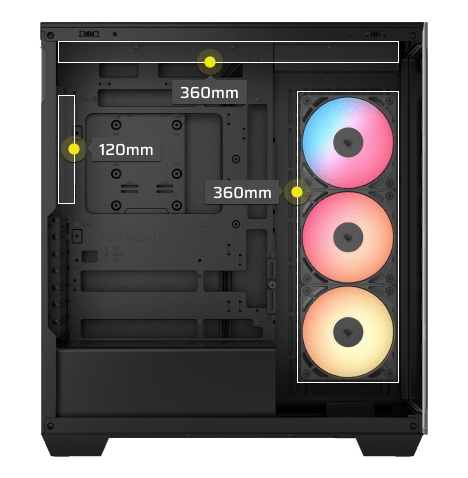 Enjoy the low noise and temperatures that come with liquid cooling thanks to multiple radiator mounting positions.