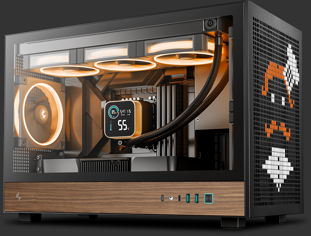 CH260 WOOD配備鋼化玻璃側板,可更好的展示內部硬件,而頂部與前面板均可自由搭配PIXEL系列像素顆粒。此機殼同時支援背插主機板,背板區域預留了29.6MM的充裕走線空間。