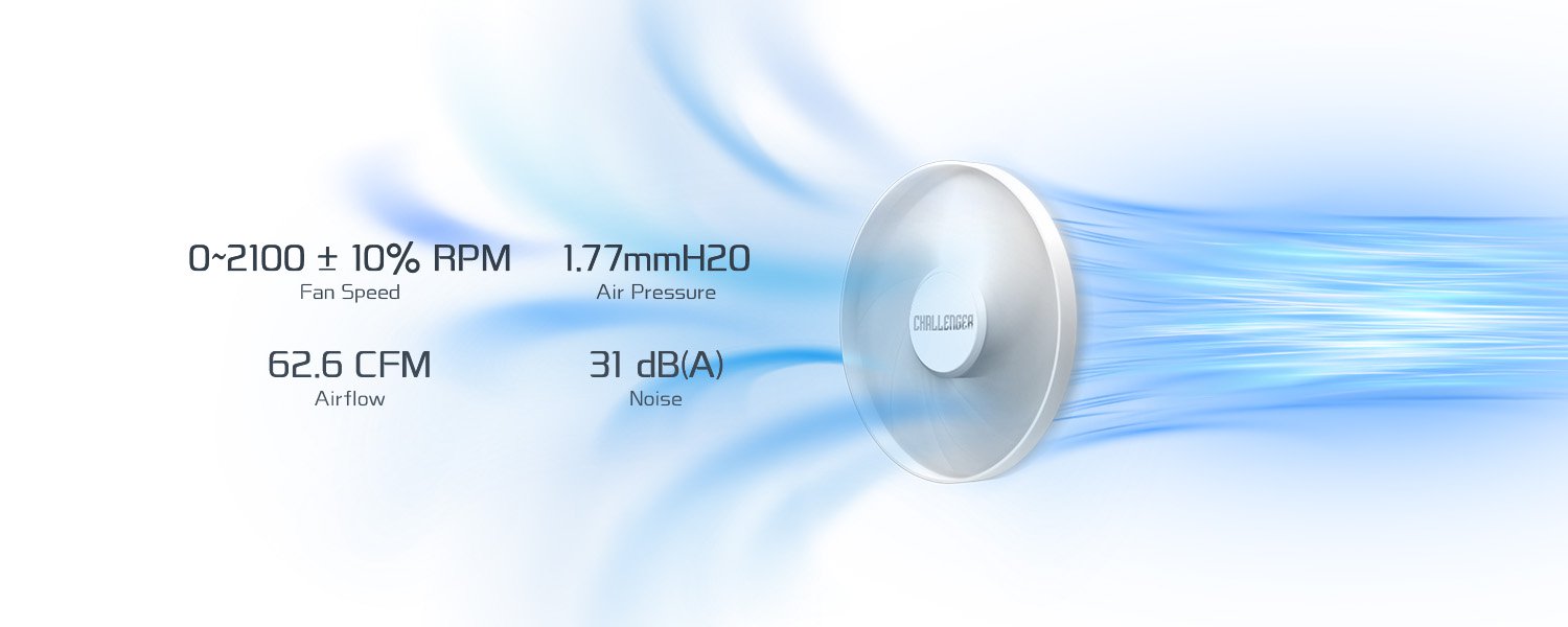 The Ring-Frame Blade design features reinforced structure to optimize airflow concentration, generating stronger static pressure and deeper radiator penetration.
