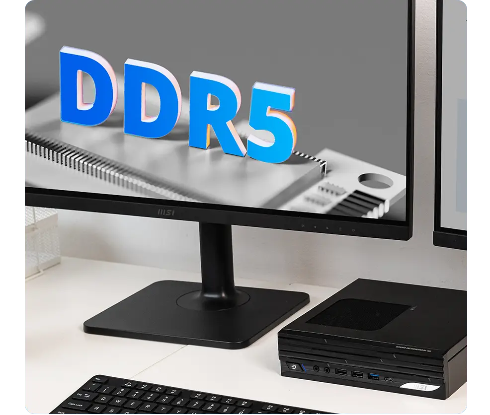最高搭載 5600MHz,具備 2x DDR5 SO-DIMMs 插槽,總計最高支援 64GB 容量,載入應用程式更快速流暢。