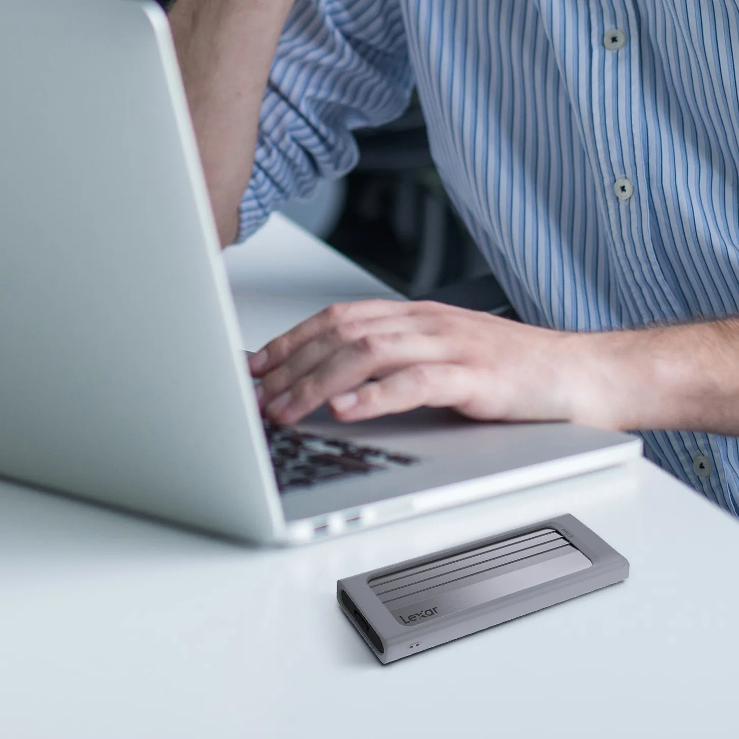 Lexar® E300 是一款功能強大的 M.2 SSD 外接盒,讓您能輕鬆將閒置的內接 M.2 硬碟轉化為高速可攜式儲存設備。搭載 USB 3.2 Gen 2 介面,提供高達 10Gbps 的極速傳輸力,結合堅固的鋁合金散熱機身與全方位的防護設計,是您升級電腦後的最佳配件再造方案。